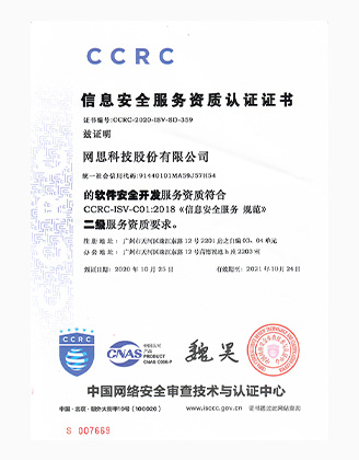 网思科技凭借雄厚的技术实力成功获得CMMI5、CCRC、6个ISO标准认证等资质,并被授予国家专精特新小巨人企业、国家高新技术企业、广东省专精特新中小企业和广州未来独角兽创新企业等多项政府和行业的重要荣誉。